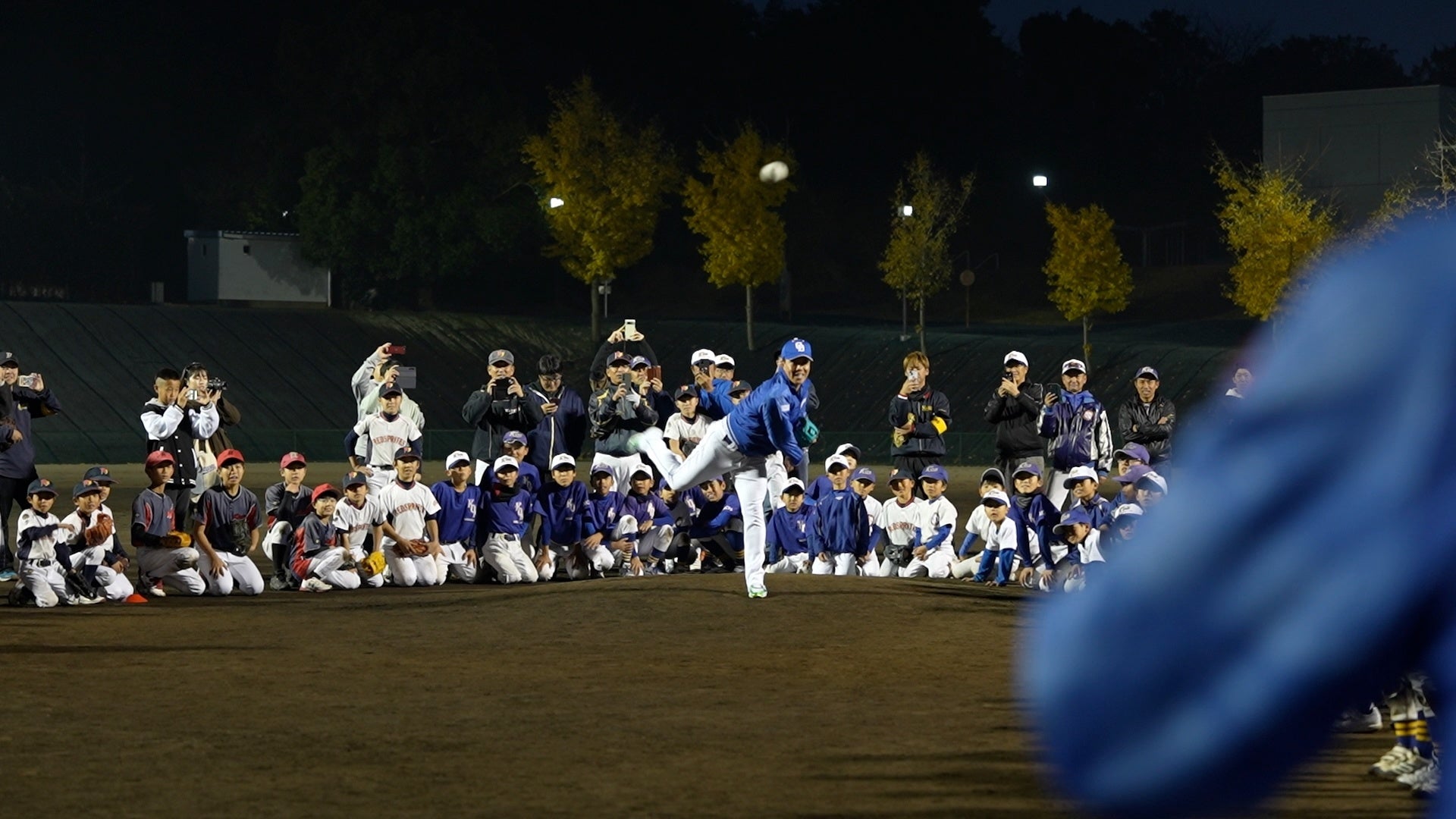 シンポジウムの後は、隣接する野球場にて、町内の少年軟式野球・ソフトボールチームを対象とした野球教室を開催。