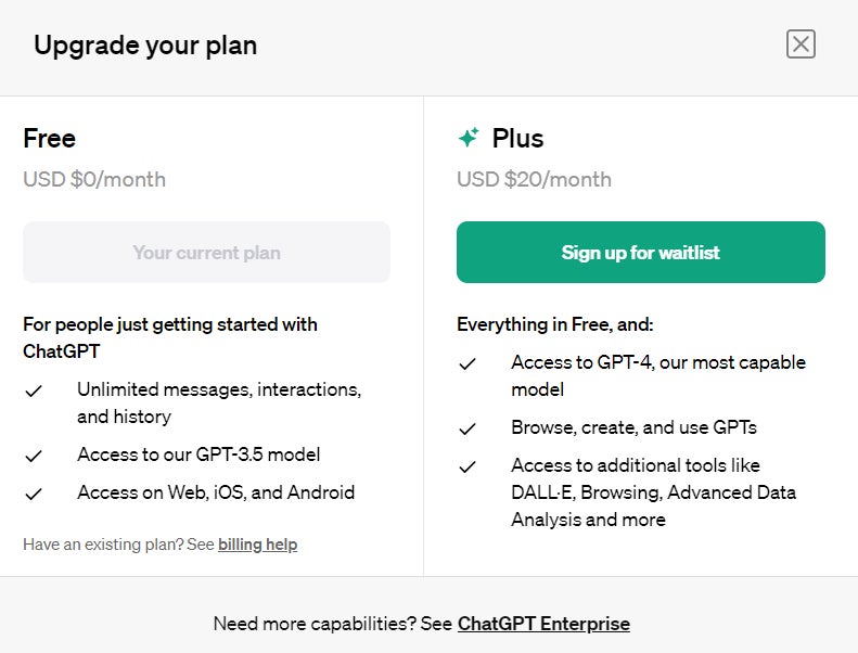 ChatGPT Plus と呼ばれる有料版の価格は、月額 20 ドルです。 ChatGPT のこのプレミアム バージョンでは、ChatGPT のより強力な GPT-4 バージョンへのアクセスが提供されます (無料バージョンには GPT-3.5 のみが含まれます)。画像生成や応答時間の短縮などの他の機能も備えています。