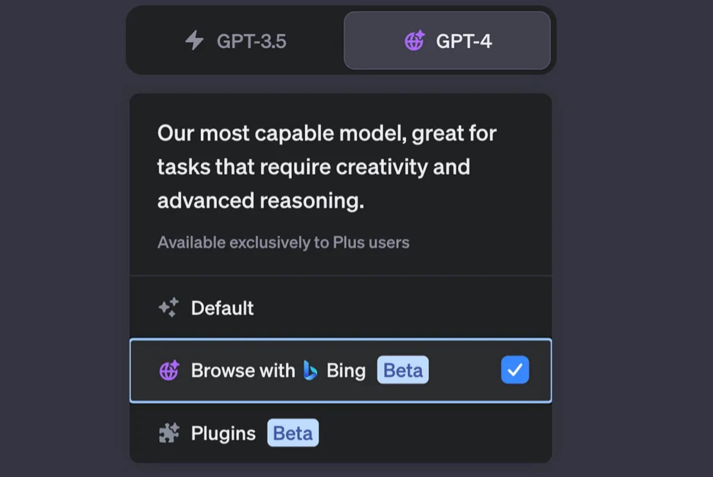 ChatGPT の基本バージョンは Web を参照して応答にフィードできる新しい情報を学習できませんが、高度な ChatGPT Plus バージョンはこの新しい機能で更新されました。インターネットにアクセスでき、Microsoft の Bing 検索ツールの助けを借りて、独自の検索を実行する ことができます。