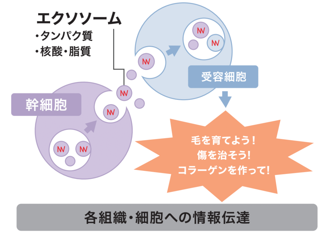 細胞はエクソソームを取り込むことで、成長因子生成や創傷治癒などの効果がもたらされます。