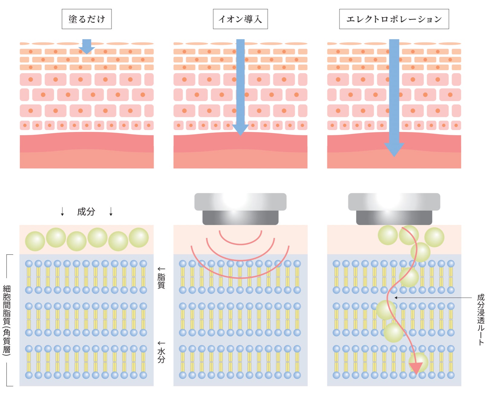 ウォーターピーリングやエレクトロポレーションなど最新の美容機器と注目の成分を積極的に用いた