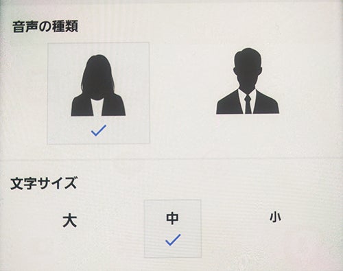 男性の音声と女性の音声をお選び頂けます。シーンやお好みに応じて変更可能です。音声に応じて画面に男性アイコン、女性アイコンも表示されます。