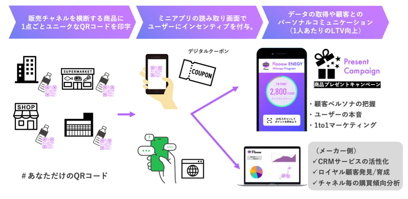 株式会社Flooowは、大企業とスタートアップ双方で新規事業経験のある経営陣による「マーケティング」×「共創クリエイティブ」×「システム開発力」を武器とするスタートアップです。パートナー企業の見えざる資産の探索・アイデアづくり・世の中に定着するビジネス開発が強みです。今回のリコーグループ様とのシナジーを通じて、個品QRの高速生成・高速印字技術を活用し、生活者のタッチポイントごとの購買行動を効果検証するツールの提供を目指します。