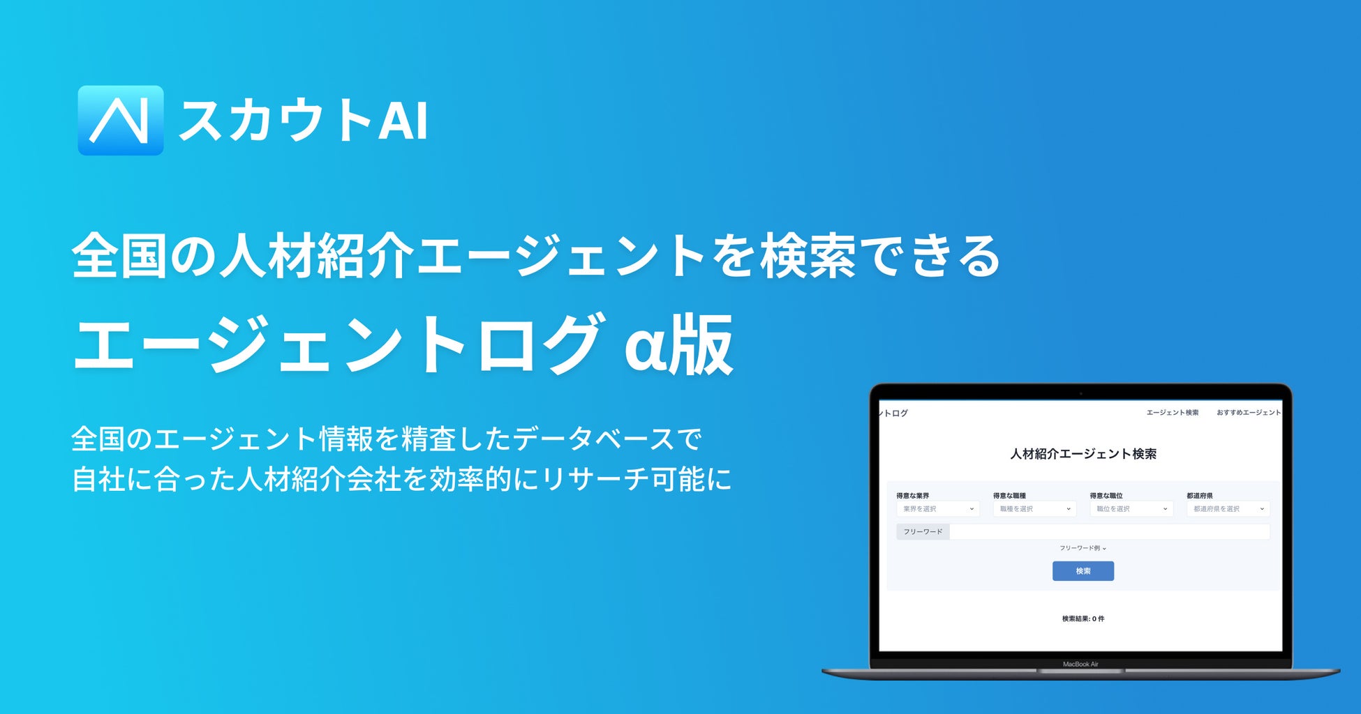 【新サービス】全国の人材紹介エージェントを検索できる「エージェントログα版」をリリース【スカウトAI】