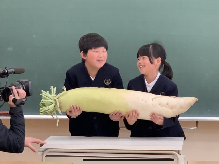 2024年1月に収穫されたジャンボ大根は、長さが90cmほど、重さが20㎏以上になるものもあり、一般的なダイコンの20~25倍の重さとなりました。なお、2023年2月22日に収穫された万田大根は、重さが45.865㎏に達し、「最も重い大根」の世界記録を達成しています。