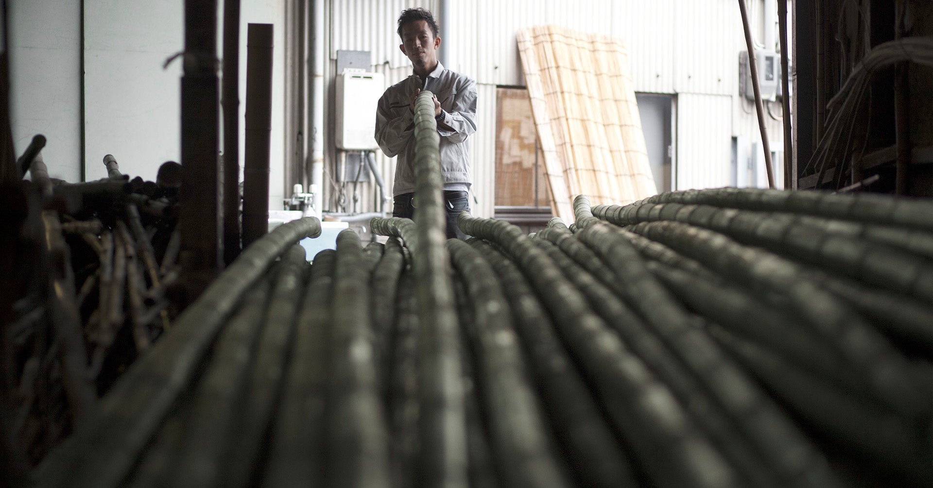 数ある素材を検討する中で、唯一その可能性を感じられたのが、京都の老舗竹材店の特殊加工した竹でした。