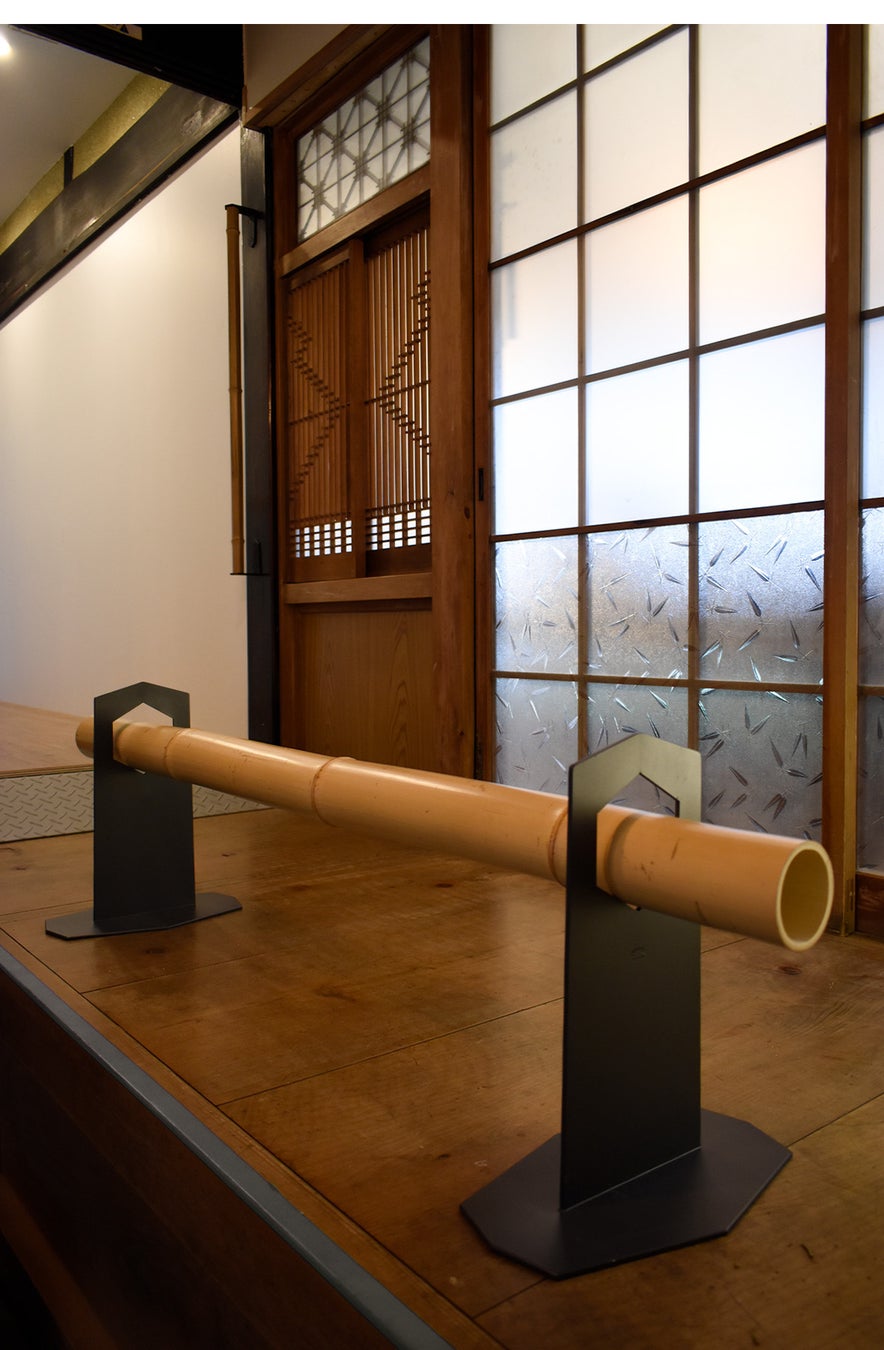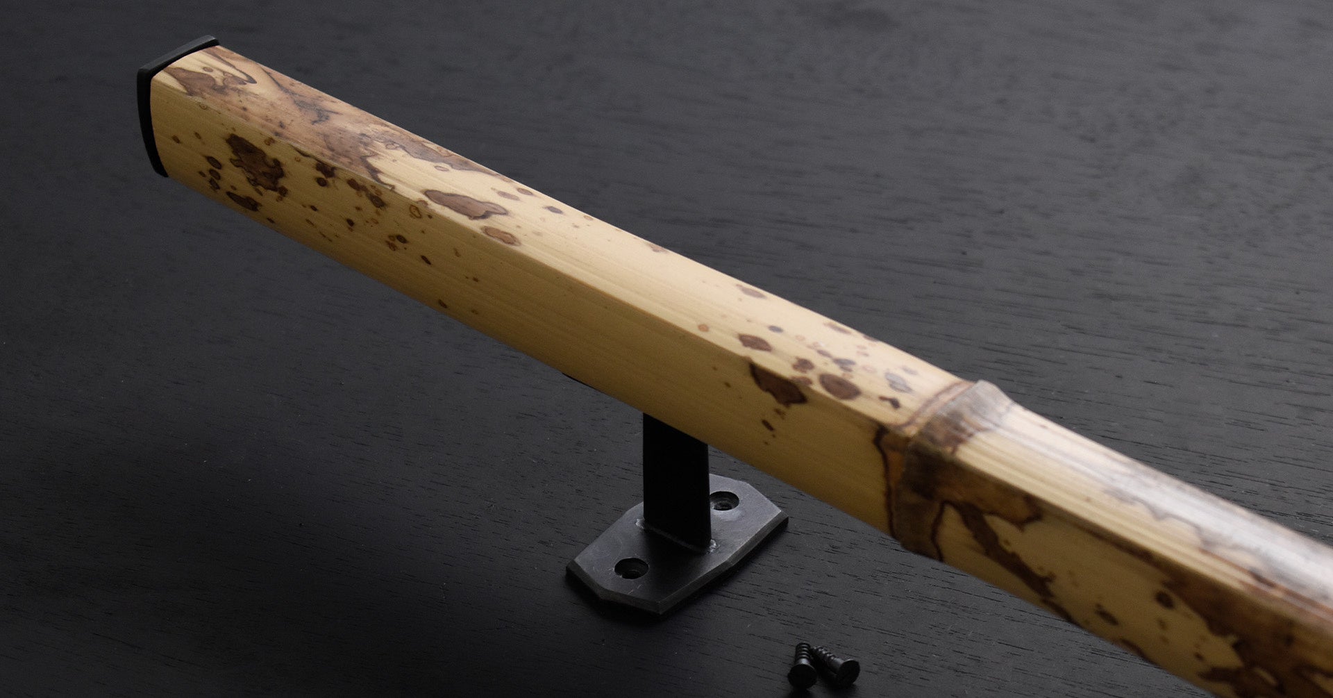このシリーズの開発のきっかけは、当社が手がけた京都府和束町の古民家宿「大杉屋」にあります。茶の町として知られ、近年は外国人観光客も増加する和束町にて、空間に合う素材を模索する中で出会ったのが「竹」でした。地域の資源を活かし、鉄との新たな融合を目指す中で、「侘び竹」シリーズが誕生しました。