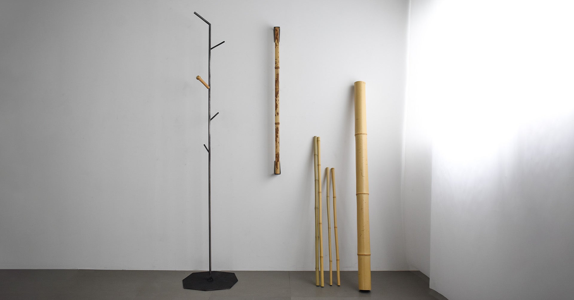 素材には、節の表情豊かな竹と、時間とともに風合いを深める鉄――すなわち“錆び”をまとう素材を使用。
