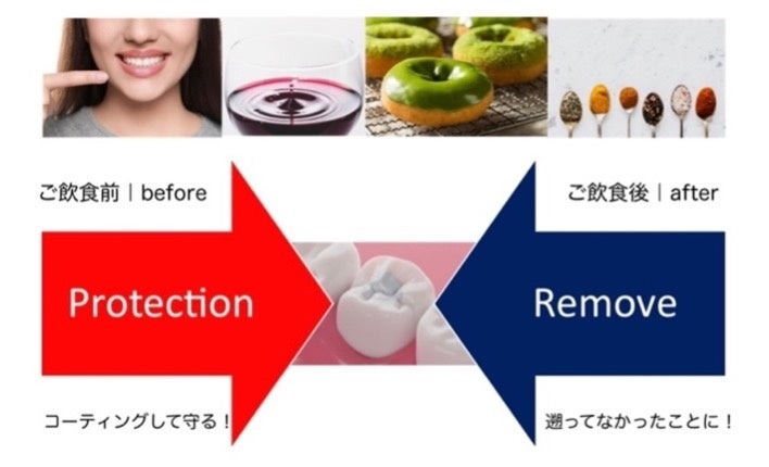 ステイン除去の歯磨き粉は存在しているけれど、もっと手軽に使えて、持ち歩きだって簡単にできたらいいな。Protection(守って=予防)にもなって、Remove(除去= 無かったことに!)もできるといい。そんな歯科治療の視点とユーザー目線の発想から試行錯誤を重ねて、「チュアブルタブレット」として商品化しました。