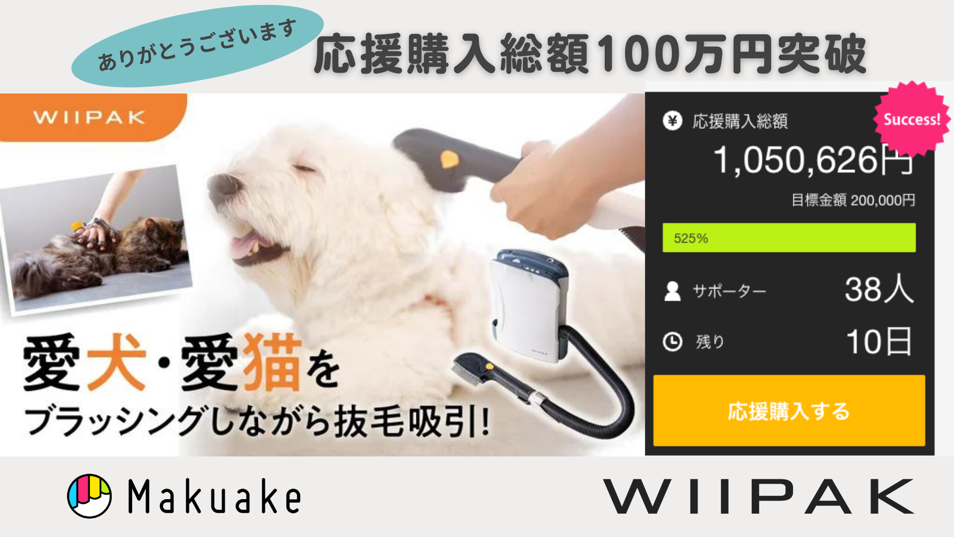 〜飼い主にもペットにも優しいケア製品、WIIPAKの応援総額がMakuakeにて100万円突破〜