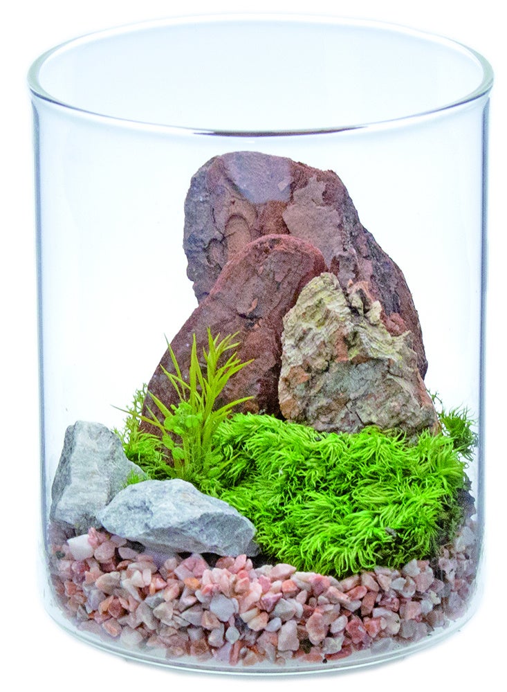 シンプルな円柱ガラスに、苔と砂利を自由に配置できるキット。