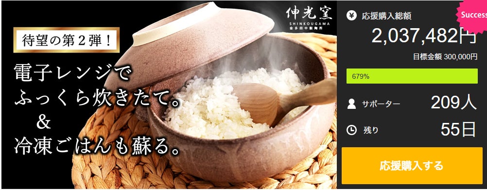 Makuake公開からわずか1週間で200万円(600%)達成!!電子レンジでふっくら美味しいごはんが炊ける&冷凍・冷ごはんも蘇る万能おひつ「CORON Cook」