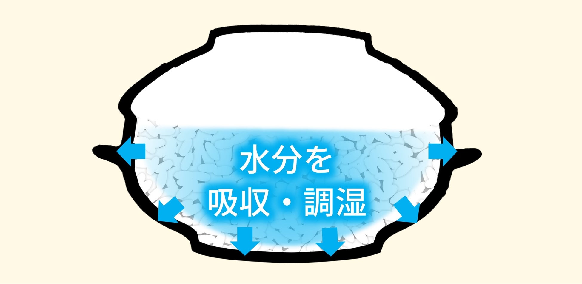 無数の細かい気孔(穴)がおひつ内の余分な水分を吸収・調湿してくれるので、ふっくらつやつやとしたごはんに仕上がります。