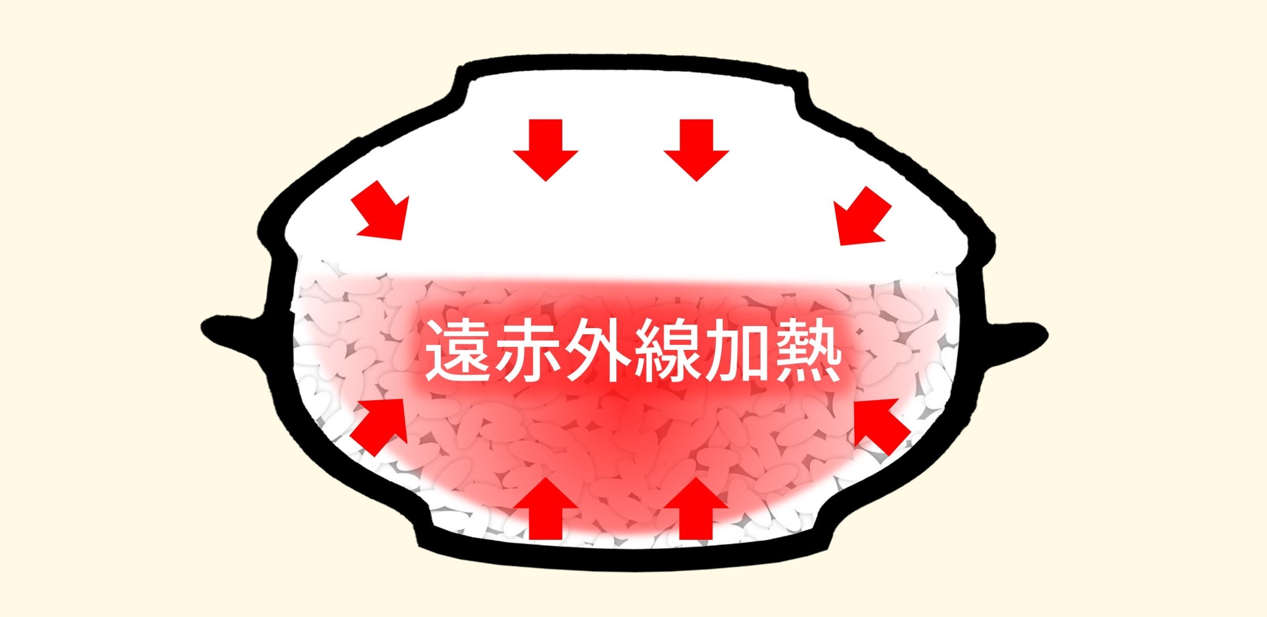 遠赤外線効果により食材の表面だけでなく、中までしっかりと熱が加わります。お米をふっくら炊き上げ、お肉や野菜を柔らかく仕上げます。