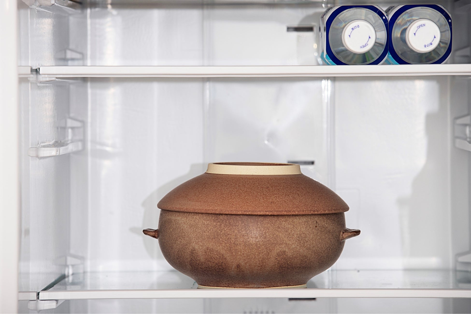 素材で使用している土は、焼成すると無数の細かい気孔(穴)ができます。無数の細かい気孔(穴)が、ごはんの黄ばみや臭いが出るのを防いでくれます。炊飯器で長時間保温するよりもごはんがパサパサにならず、電気代の節約にも役立ちます。