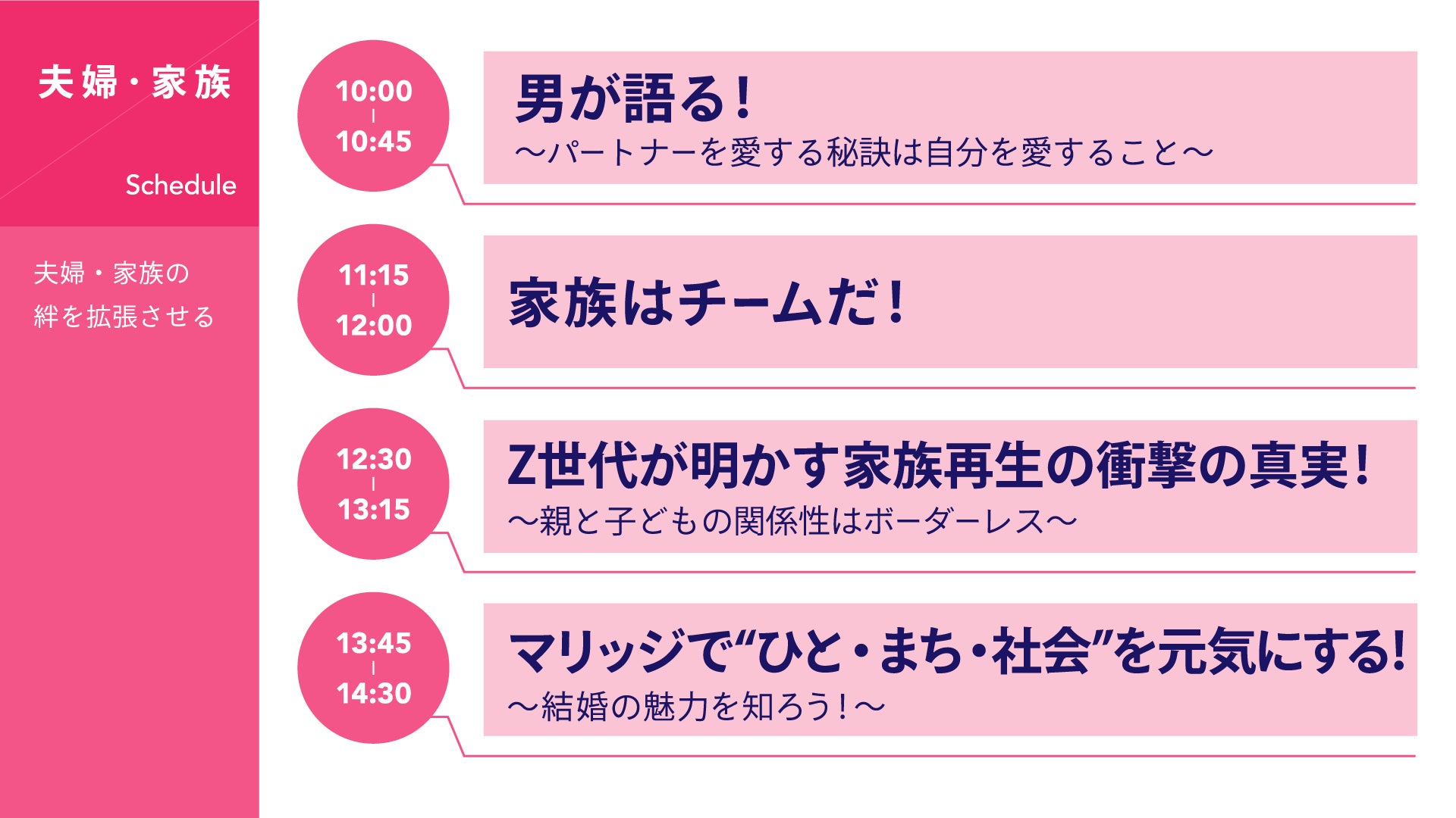 イベントホールでは、「子育て・教育」「夫婦・家族」「働く人」「ウェルネス」