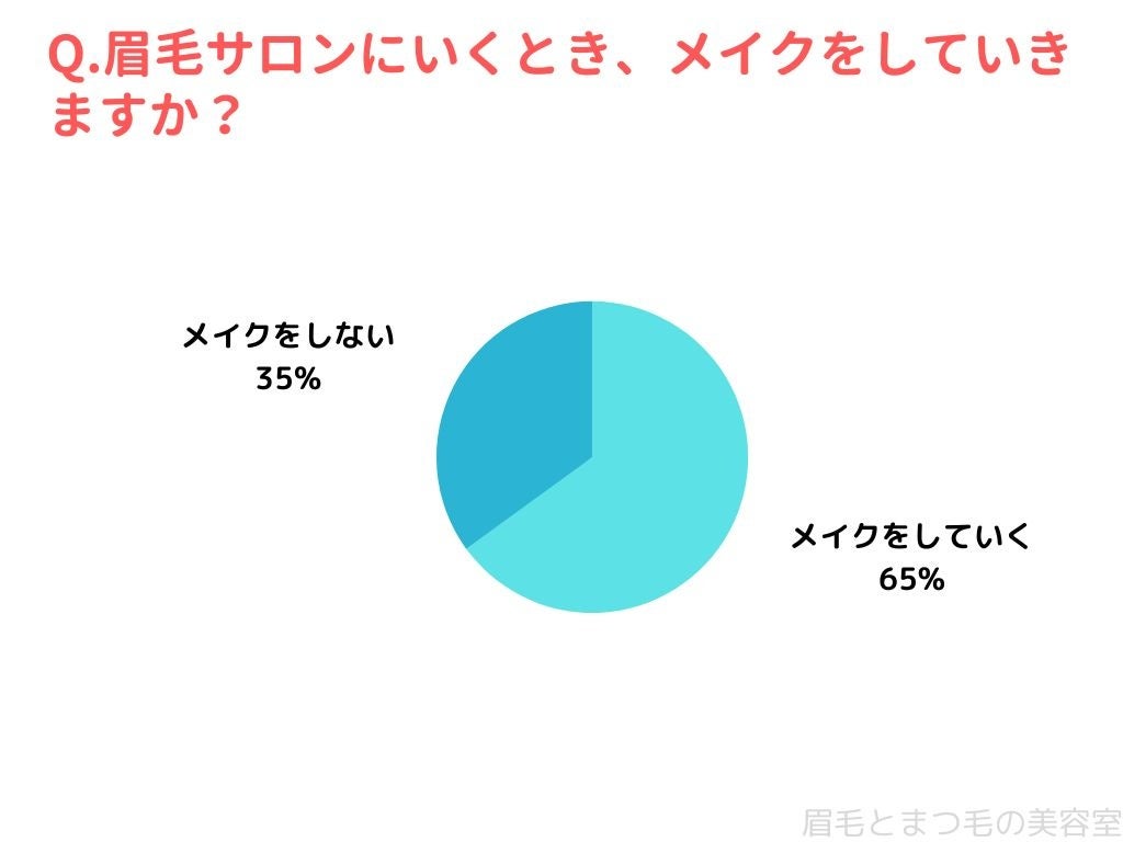 眉毛サロンに行く前に「メイクをしていく(65%)」人が多いようです。「メイクをしない(35%)」人もある程度いるので、好みともいえるでしょう。