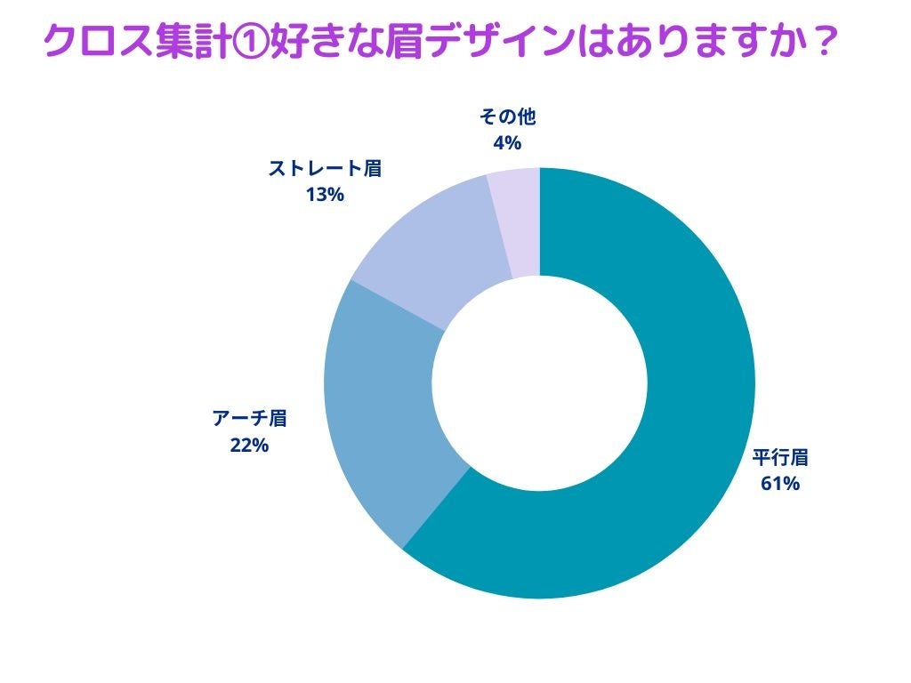 どのような眉デザインが好きかお聞きしたところ「平行眉(61%)」、「アーチ眉(22%)」、「ストレート眉(13%)」という結果になりました。