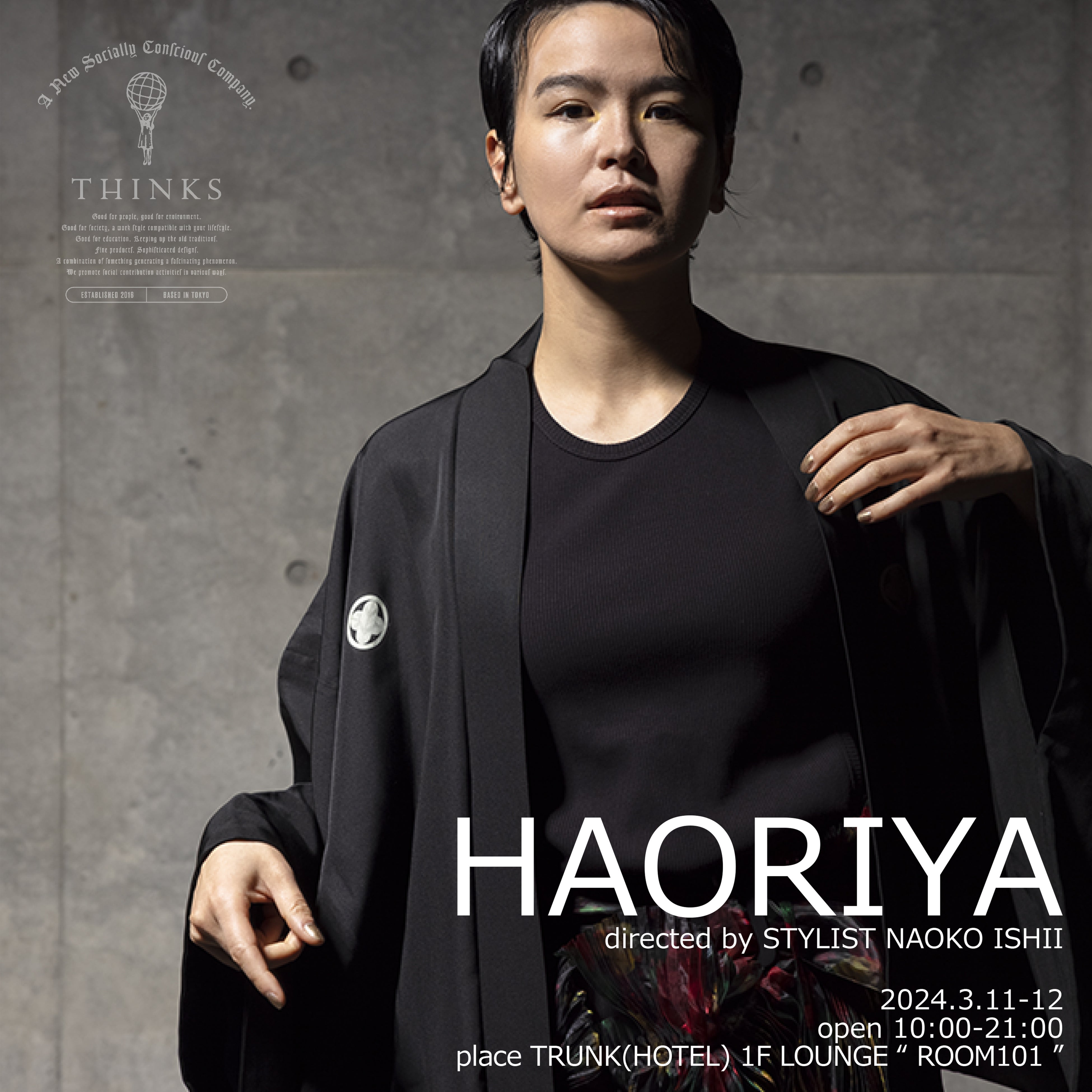 エシカルクリエイティブエージェンシー、株式会社THINKSTHINKS(本社:東京都世田谷区、代表:島野麻里)のクリエイティブディレクター/Fashion stylist 石井なお子が提案する、「HAORIYA(羽織や)」の初POPUP SHOPをTRUNK(HOTEL)(東京都渋谷区神宮前)1F ROOM101で、3月11日(月)-12日(火)の2日間限定オープンいたします。アンティークで一点物の個性豊かな羽織を一堂に集め、直接ご覧いただけるこの機会。是非足をお運びください。