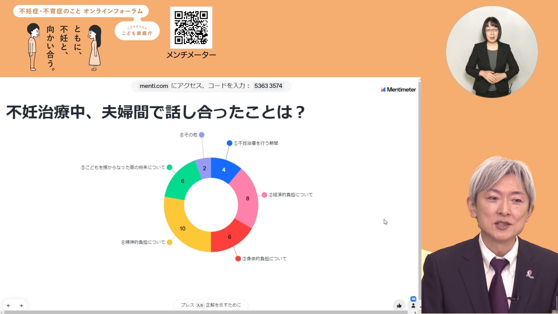 こども家庭庁は、日本の未婚化や晩婚化が進み、少子化が大きな社会的課題になっている中、不妊症に悩む夫婦やパートナーが不安を感じることなく不妊治療を行えるよう、社会全体が不妊へしっかりと向かい合い、理解ある社会の実現を目指すべく、「不妊症・不育症のこと オンラインフォーラム」を開催しました。