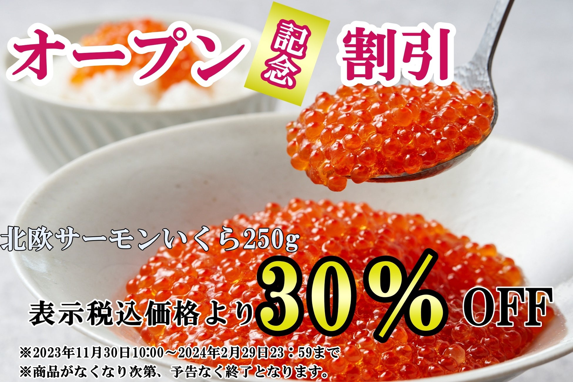 更に、オープン記念割引キャンペーンとして「北欧サーモンいくら〈250g〉」が期間限定で30%OFF!