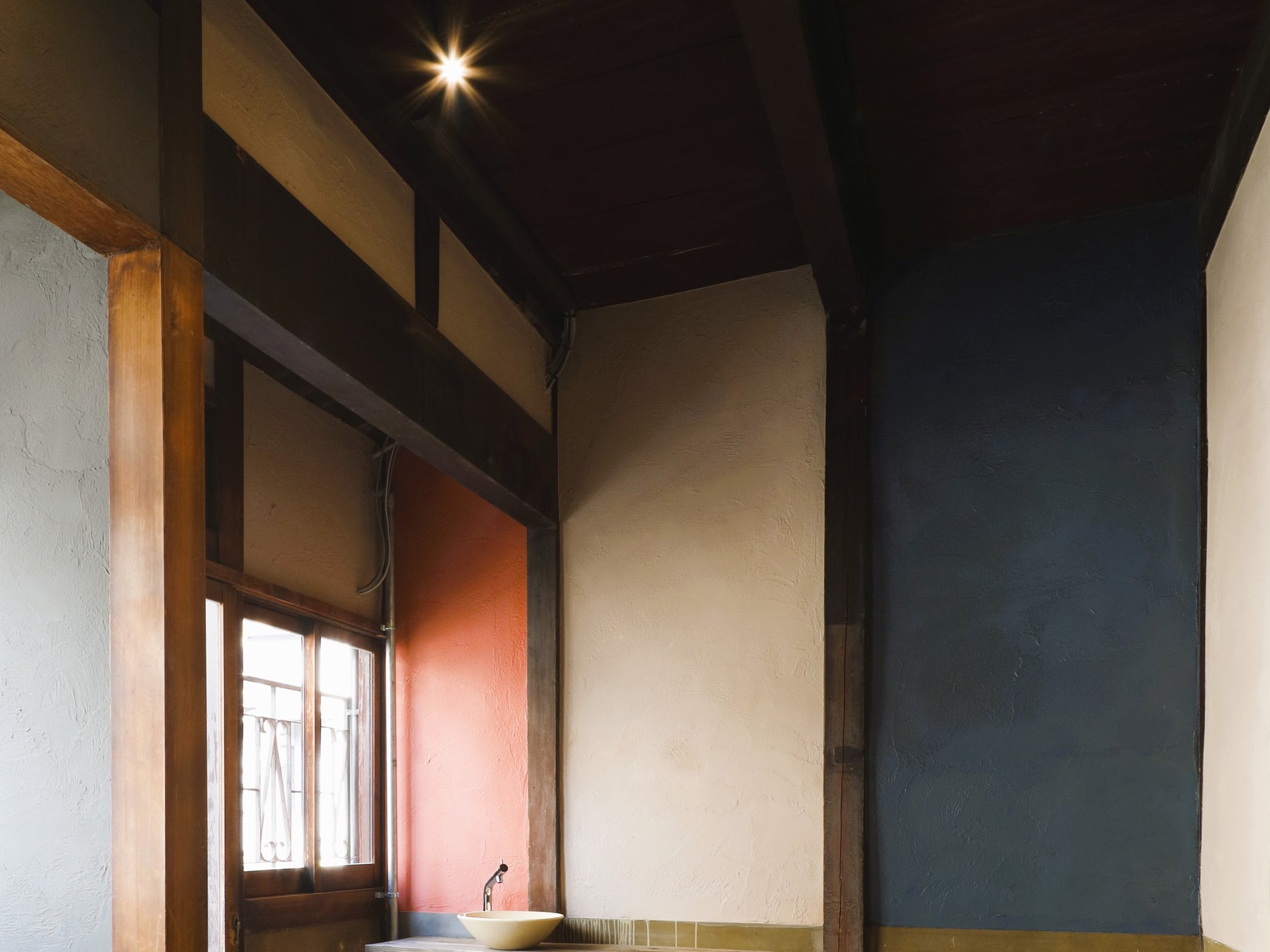 日本の伝統色を元に作られた藍、やなぎ、つつじ、柿渋、墨茶の漆喰は、空間に日本らしさとあたたかさをもたらします。