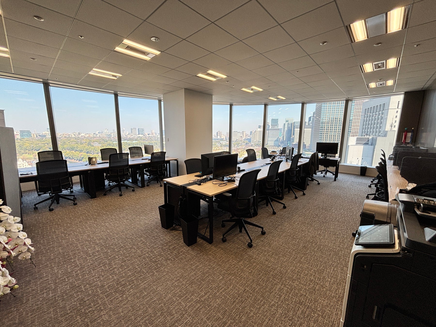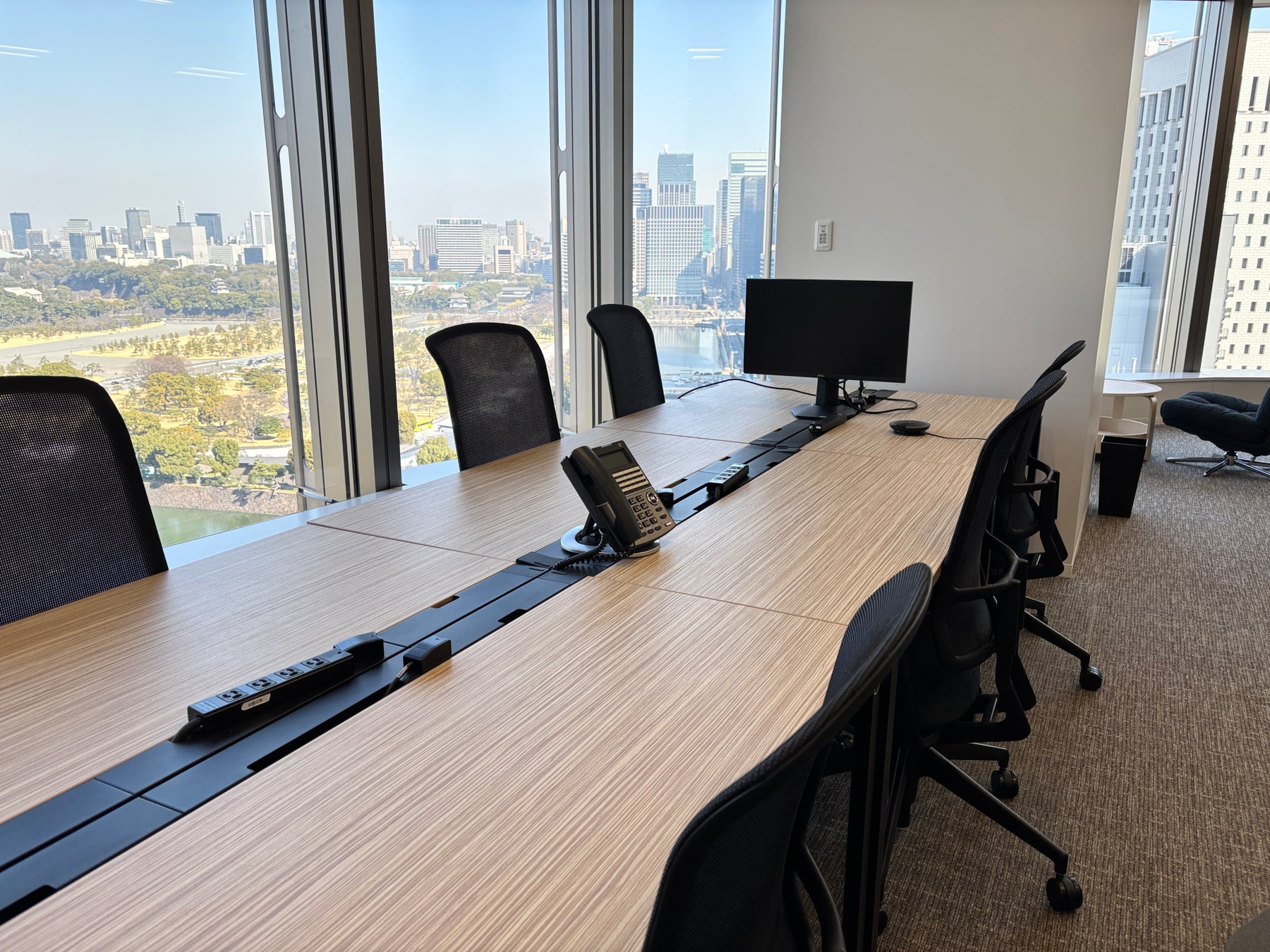 新オフィスは日比谷駅直結の利便性の高い立地にあり、都内各地への移動がスムーズに行えます。さらに、日比谷公園や皇居を望む開放的な景観の中で、快適な環境のもと業務に取り組むことができます。