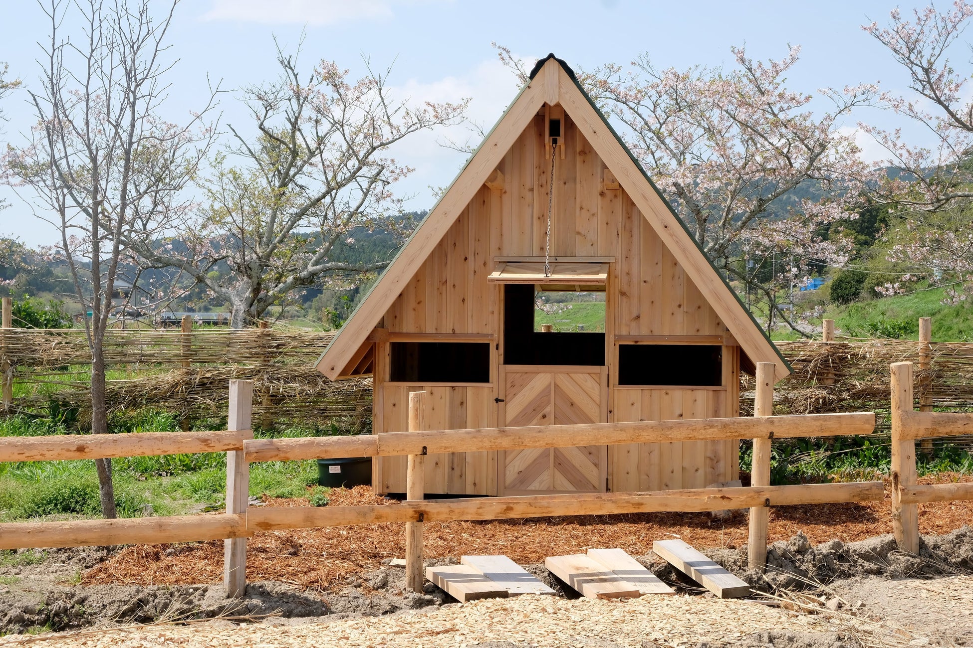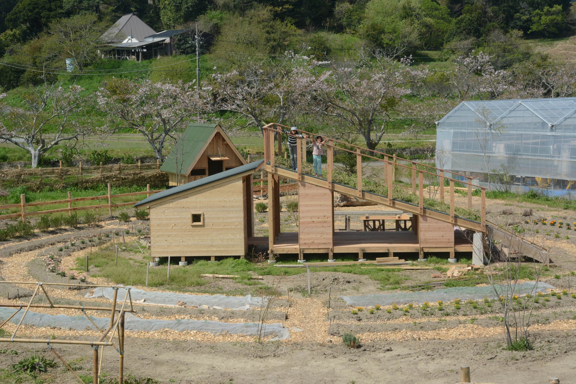 この小屋の壁は、4月29日の開園イベントで子供たちが自由にウォールペイントする予定です。