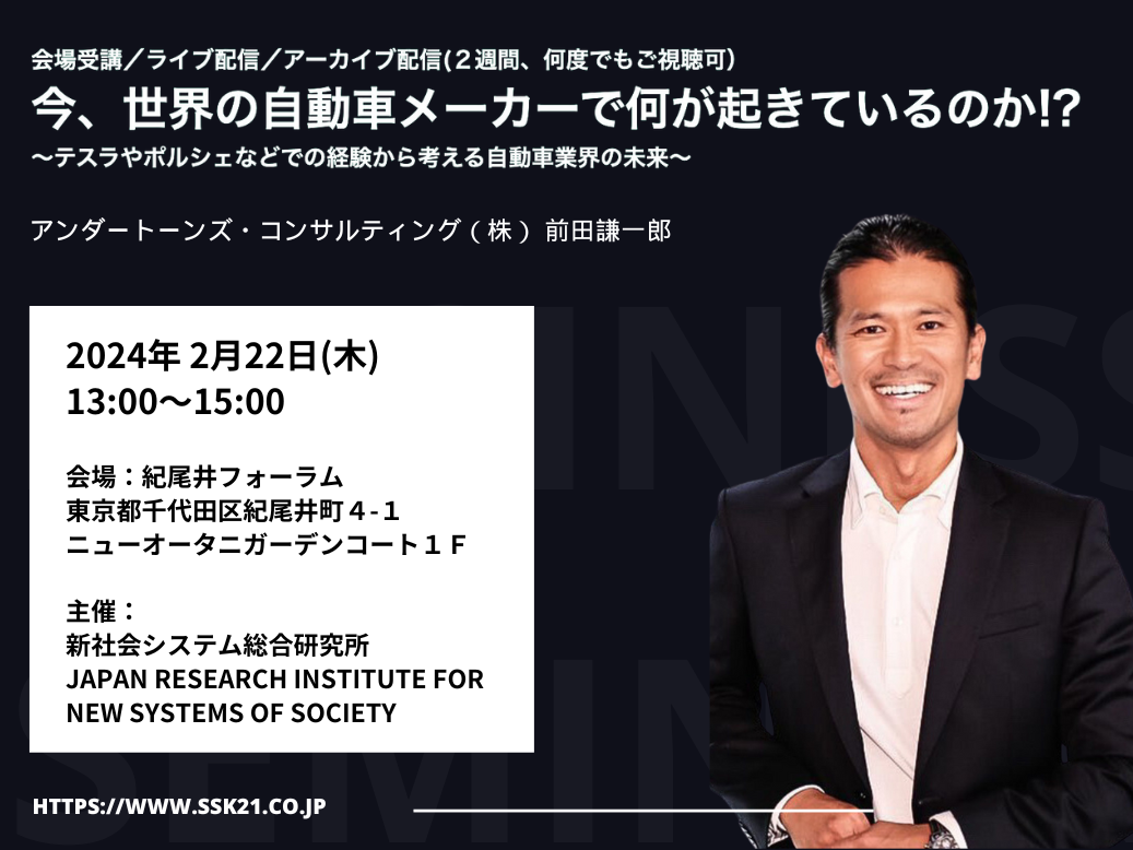 2024年2月22日 講演・セミナーのお知らせ「今、世界の自動車メーカーで起こっていること」|Undertones Consulting株式会社 前田謙一郎