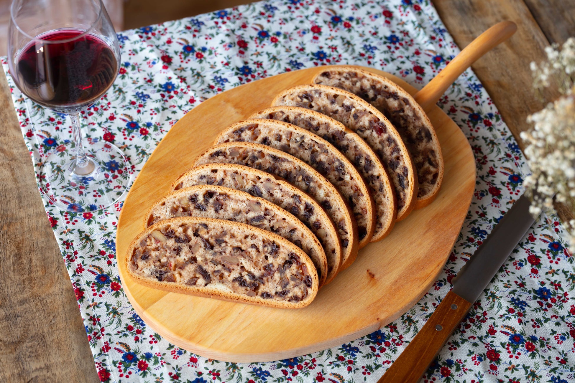 フッツェルブロートは、もともとは北欧で冬の時期に食べられていた寒い季節もおいしくフルーツを食べる工夫がされたパンです。現在は北欧やドイツを中心に、シュトーレンと同シーズンによく食べられています。独自配合のドライフルーツとクルミをパン生地に包んで、じっくりと焼き上げました。