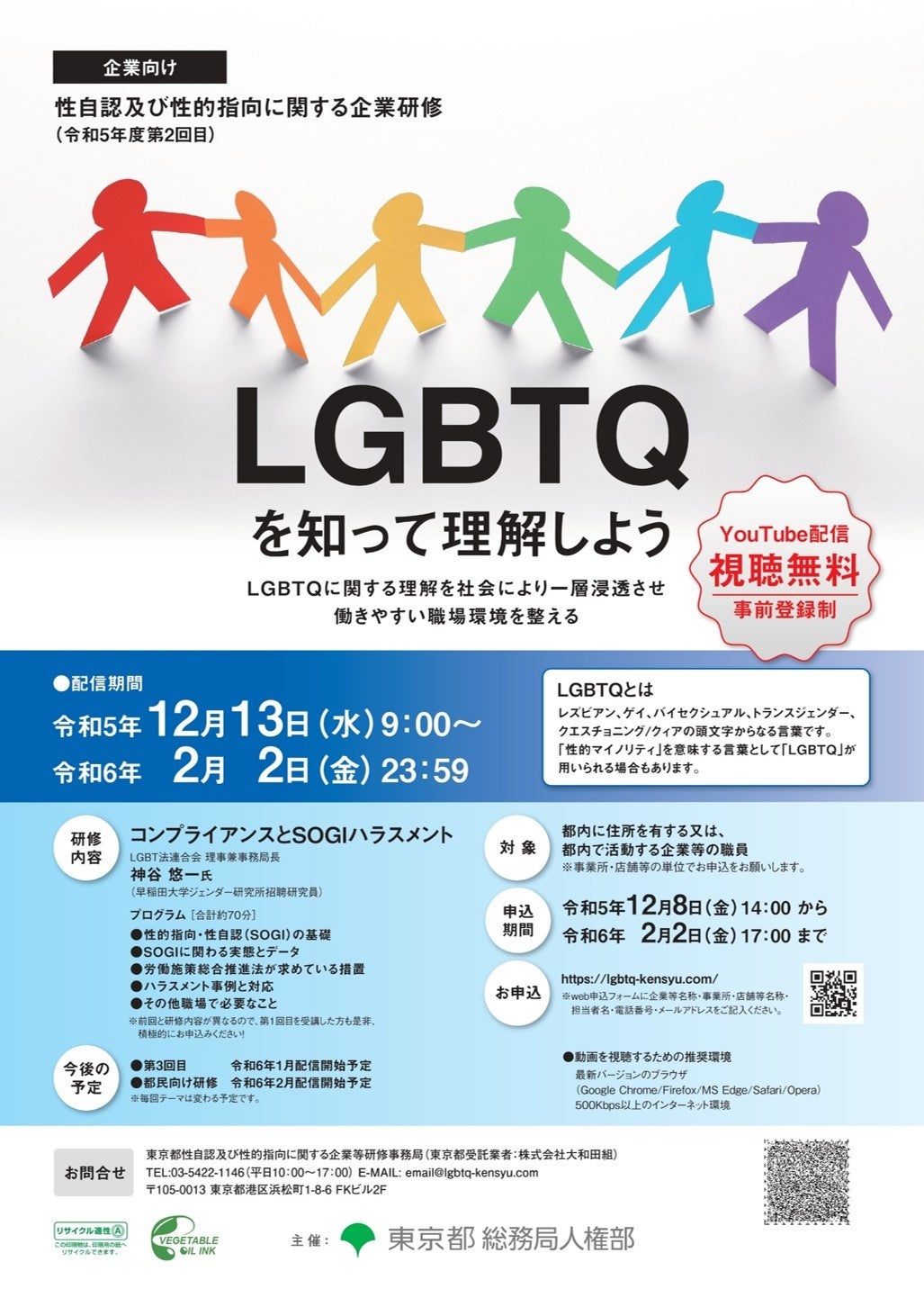 性自認及び性的指向に関する企業研修のオンライン開催(令和5年度第2回目)「コンプライアンスとSOGIハラスメント」