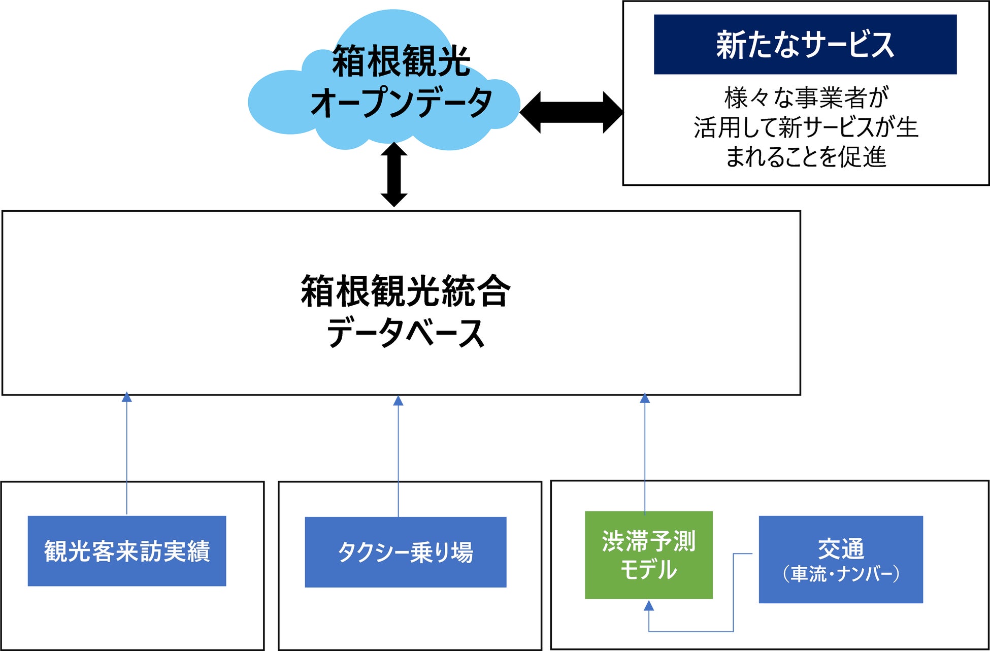 本事業では、株式会社日立システムズ、ランドブレイン株式会社とともに箱根温泉DX推進コンソーシアムを形成し、そのほか、地域内外の多くの連携機関(伊豆箱根バス株式会社、小田急箱根ホールディングス株式会社、株式会社リクルート、タイムズ 24 株式会社、株式会社ピアトゥー、株式会社バカン、トリップラボ合同会社等)と事業者間で連携し、観光DXに取り組んでいます。
