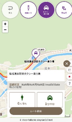 箱根町内の6ヵ所の駐車場混雑状況をデータ取得し、デジタルマップ上に混雑・交通情報を表示することで、車利用の観光をサポートします。
