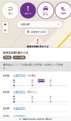 渋滞情報、交通機関の運行状況、クーポン、箱根登山バス、伊豆箱根バス、箱根登山電車の時刻表と運行情報