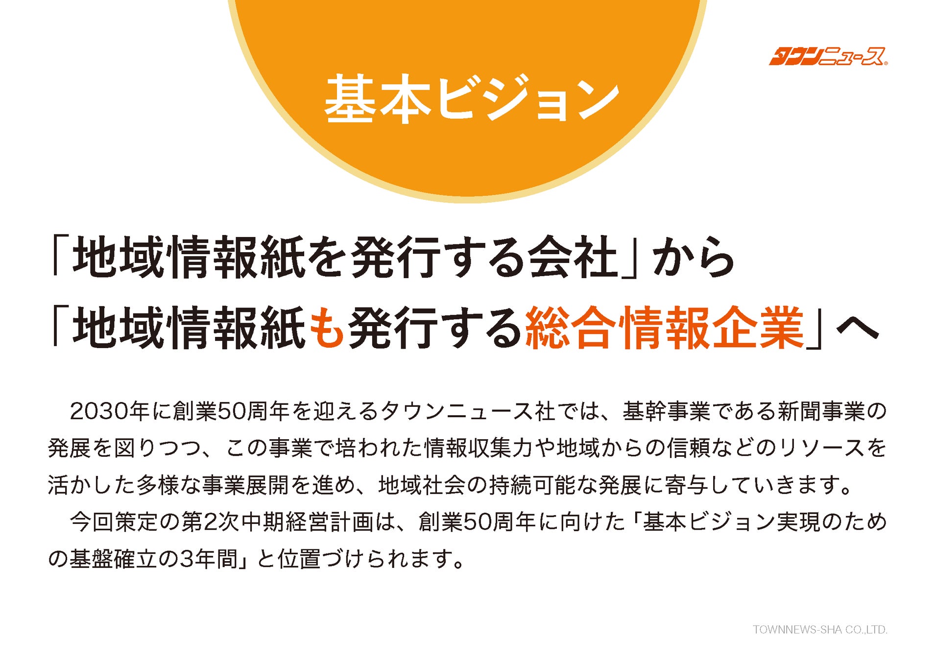 創業50年に向けての2ndステージ、「地域情報紙を発行する会社」から「地域情報紙も発行する総合情報企業へ」の基盤を確立します