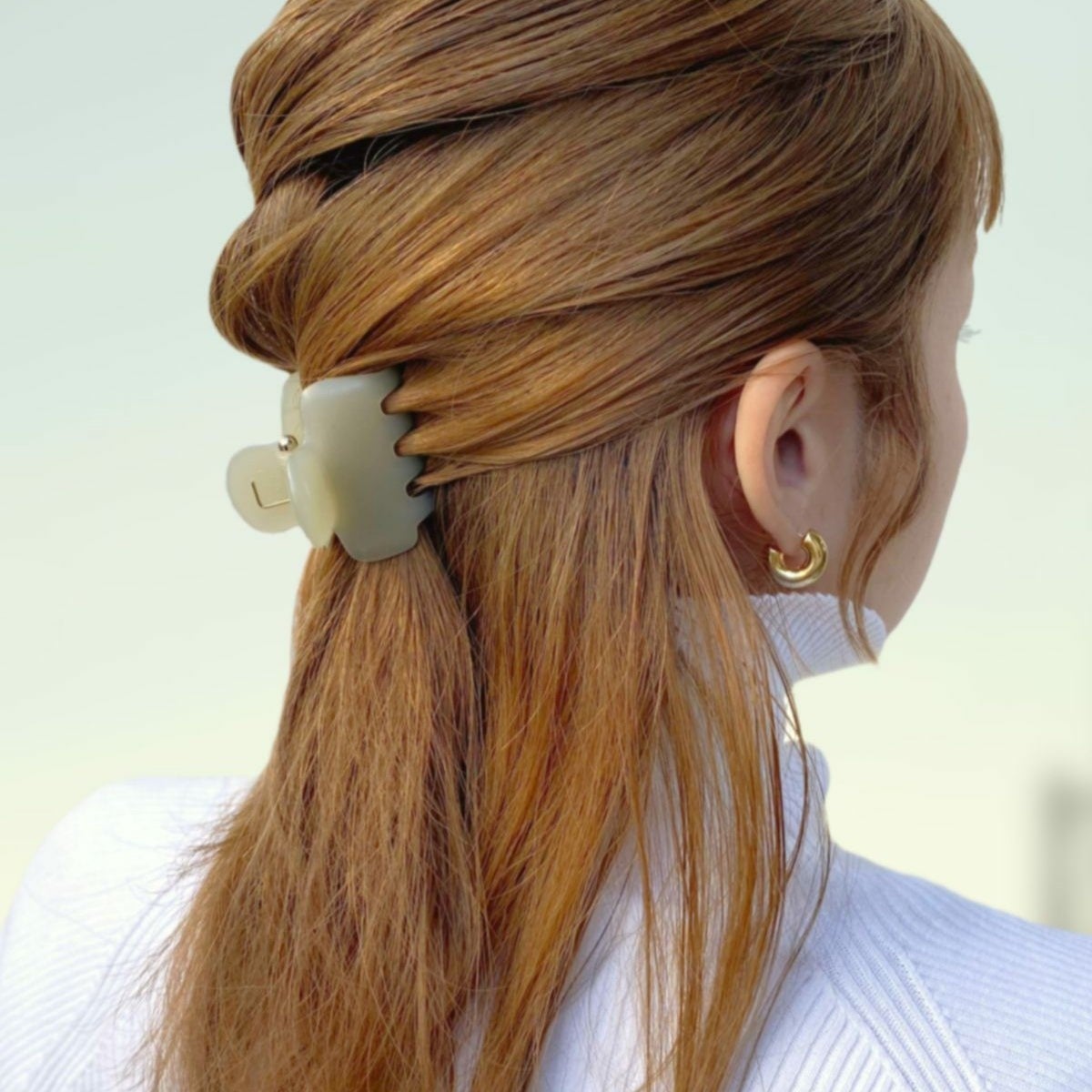 このヘアクリップは職人の手作業で製造され、自然の美しさを維持したデザインと色が魅力です。
