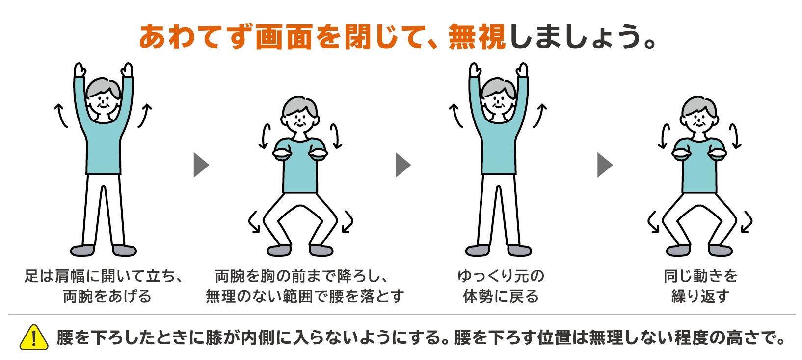 また、WEBページでは体操の動画とともに、イラストによる消費者トラブル回避体操の解説や、体操を監修していただいた武庫川女子大学健康・スポーツ科学部、松本裕史教授からの体操時のワンポイントアドバイスも公開しています。周囲の方々も体操に誘えるよう、LINEでのシェアも行える仕組みです。