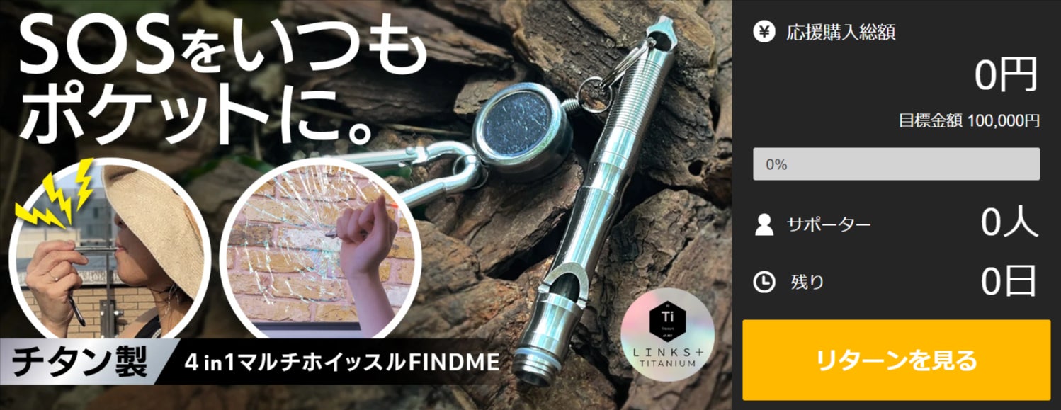 SOSをいつもポケットに!『チタン製4in1マルチホイッスルFINDME』応援購入サイトMakuakeでクラウドファンディングスタート!!