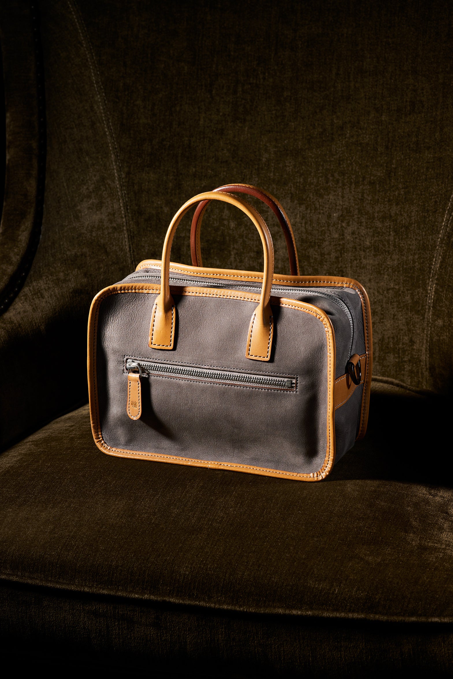 大人の休日に最適なミニバッグ、男らしさと気軽さを持ち合わせた洗練されたミニショルダーボストンです。スペイン原皮のヌバックレザーと、イギリス産オークバークレザーを使用し、日本の熟練職人が仕立てた本格派のミニバッグです。