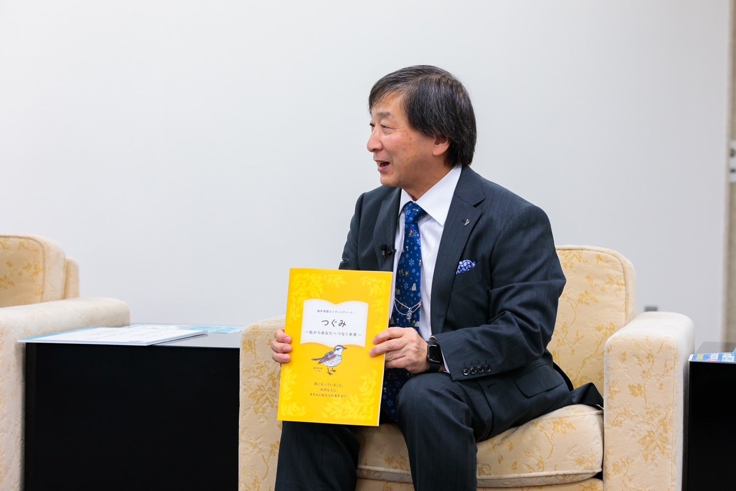 池端会長も、市民公開講座での講演やPR動画の紹介をしたうえで、3年かけて県と共同で作成したという「つぐみ」について紹介した。「つぐみ」とは、もしものときにどういった医療や介護を受けたいか等を家族と話し合い記録しておくノートで、「このノートをかかりつけ医の先生と共有することで、本人の意図に沿った形の医療が受けやすくなる」と説明。県庁や市役所、地域包括支援センター等で無料配布しているという。