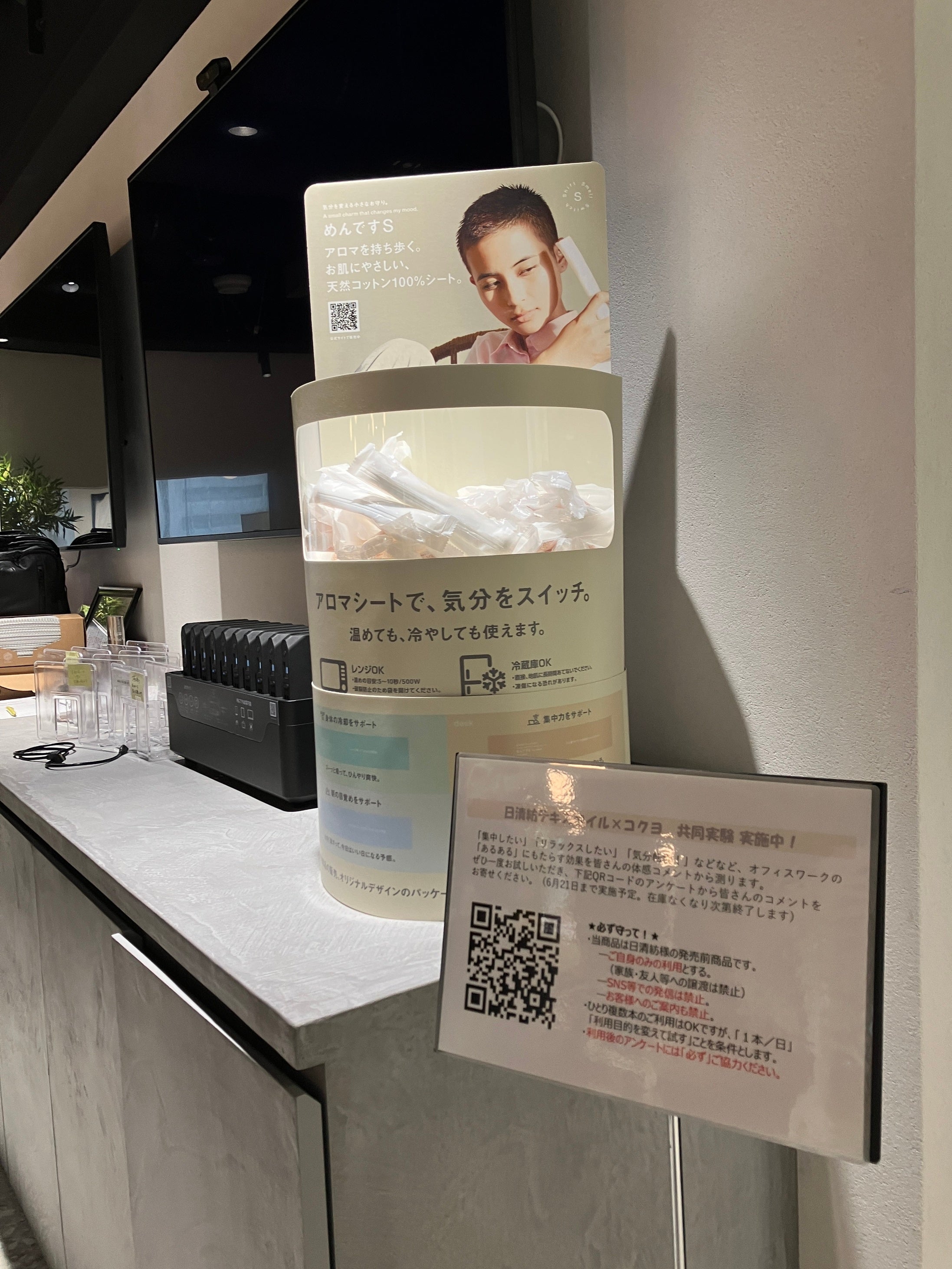 ・内容:コクヨのオフィス内に設置した「めんですS for desk」を使用後、アンケートに回答