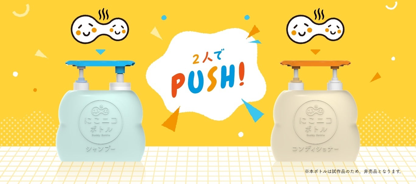 本プロジェクトでは、お風呂時間を親子で共有いただくことで、親子の会話時間や触れ合う時間を増加させられないか、という点に着目。そこで、時短・簡単を叶える家電やアイテムが次々に開発される今の時代に、”あえて”、ふたりで押さないと出てこないというシャンプーボトルを作りました。お風呂時間を”親子のコミュニケーションの場”として広めていくきっかけとして、本プロジェクトを始動しました。