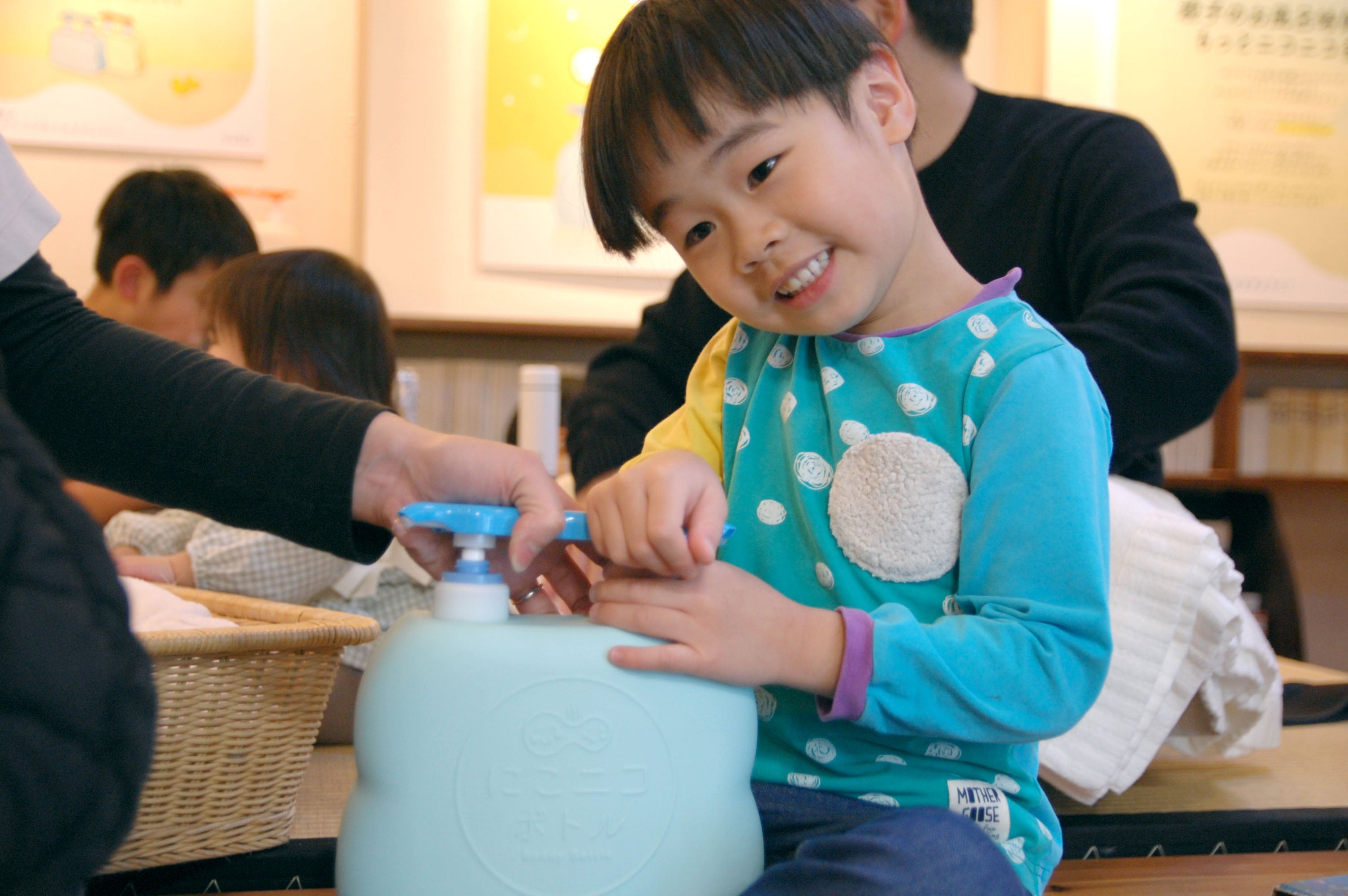 『にこニコボトル in 小杉湯』満員御礼で129名来場!親子の仲を深める、ふたりで押さないと出てこないシャンプーボトルを体験 〜来場者から「親子で楽しむ時間の大事さを再確認」「幸せを感じた」との声も〜