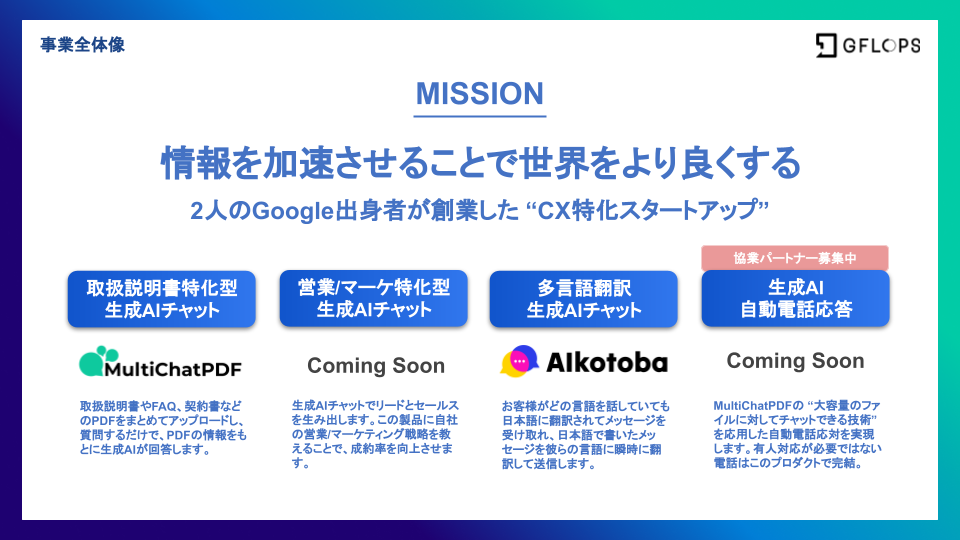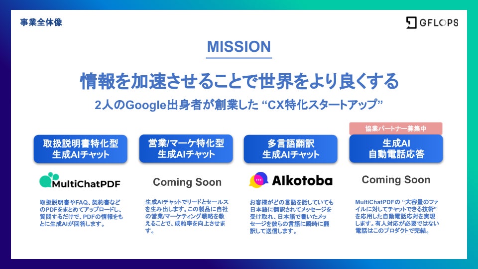 Google出身者が生成AI技術を活用して次世代の顧客体験を創出する、GFLOPSを共同創業。