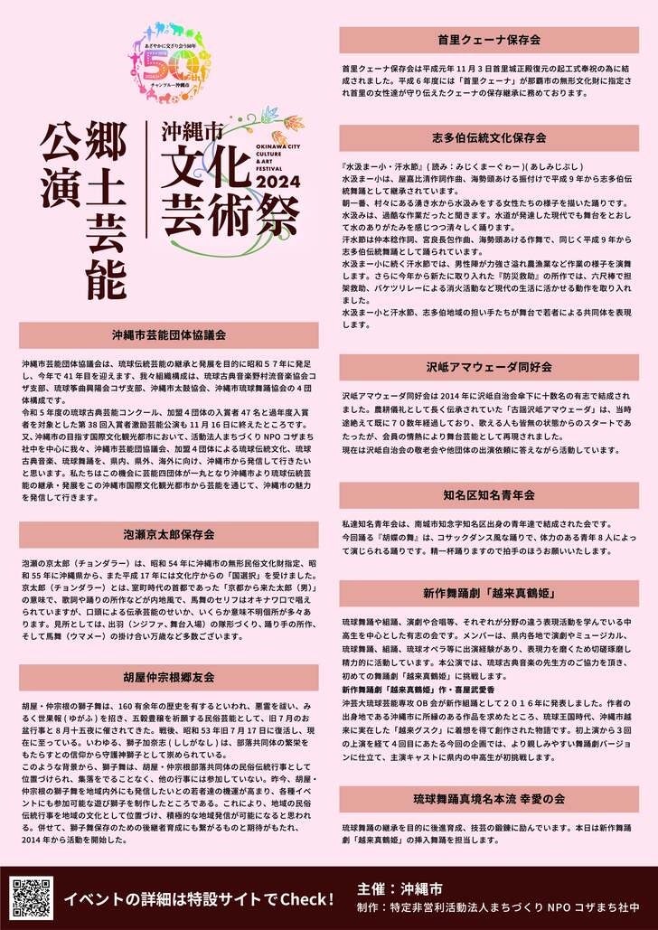 公式ページ:https://okinawacity-cultureartfes2024.com/kyoudogeinou/