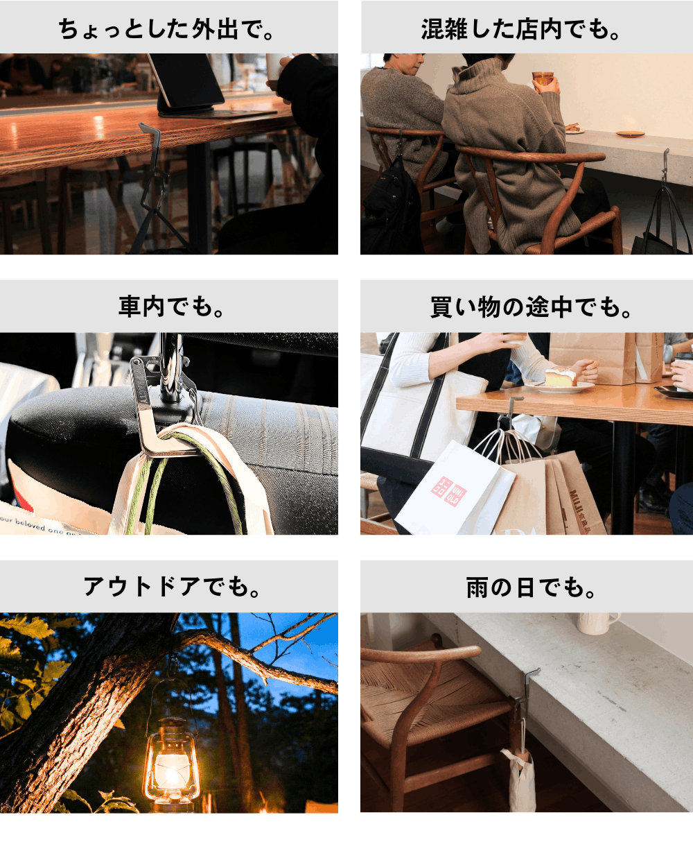 【1秒でバッグ置き場に】困ったを1つで解決する、多機能チタンカラビナバッグハンガー