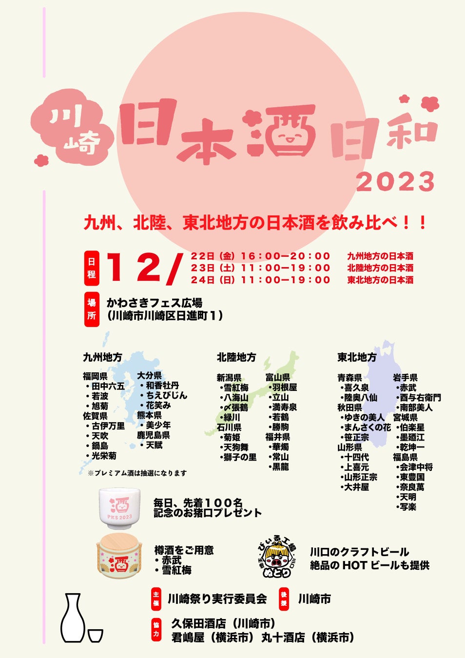 2023年12月22日(金)から24日(日)の3日間の日程で、川崎日本酒日和を開催いたします。