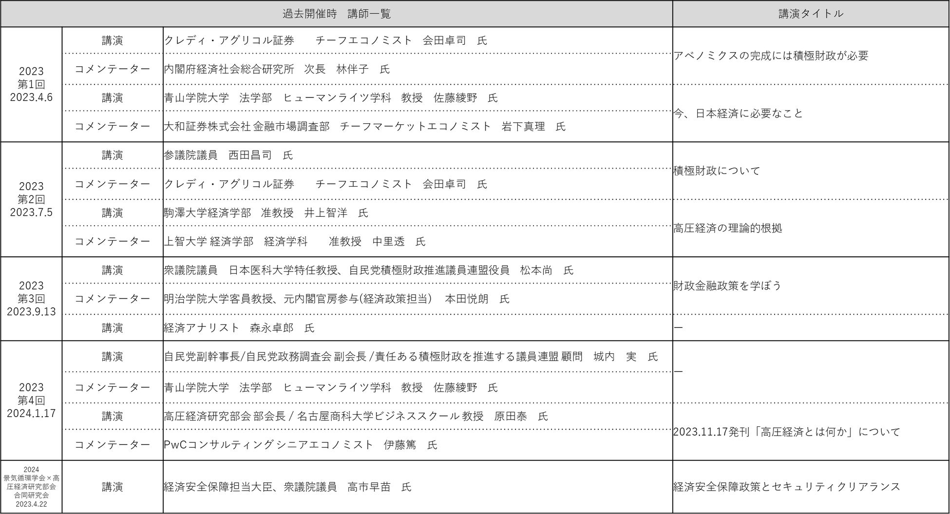 <景気循環学会 高圧経済研究部会 2024年度 第一回研究会プログラム>