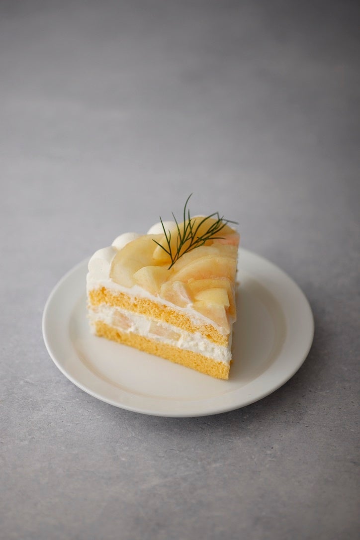山梨から取り寄せた桃をふんだんに使用。季節によって変わるショートケーキは、フルーツにより生クリームの配合、生地の厚みをかえそのフルーツに合った一番美味しいショートケーキに仕上げています。