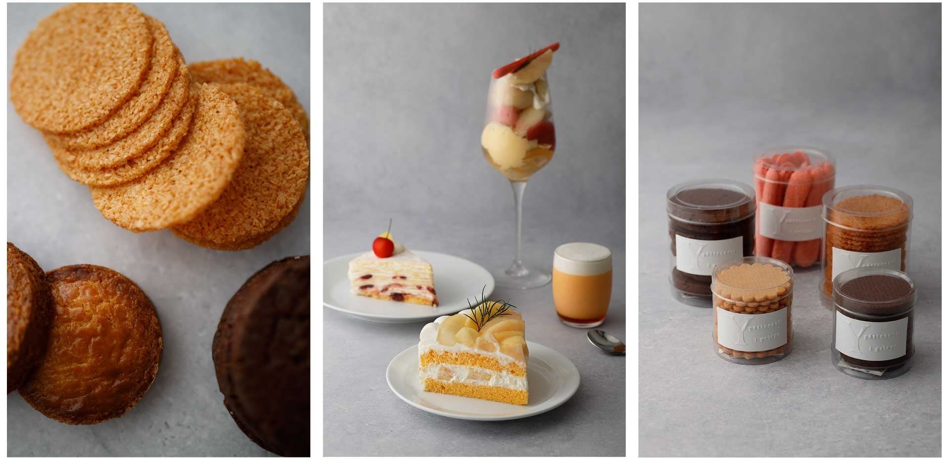 Patisserie I griegaでは、吉田が得意とするパフェやケーキの生菓子のほか、サブレなどの焼き菓子を提供します。